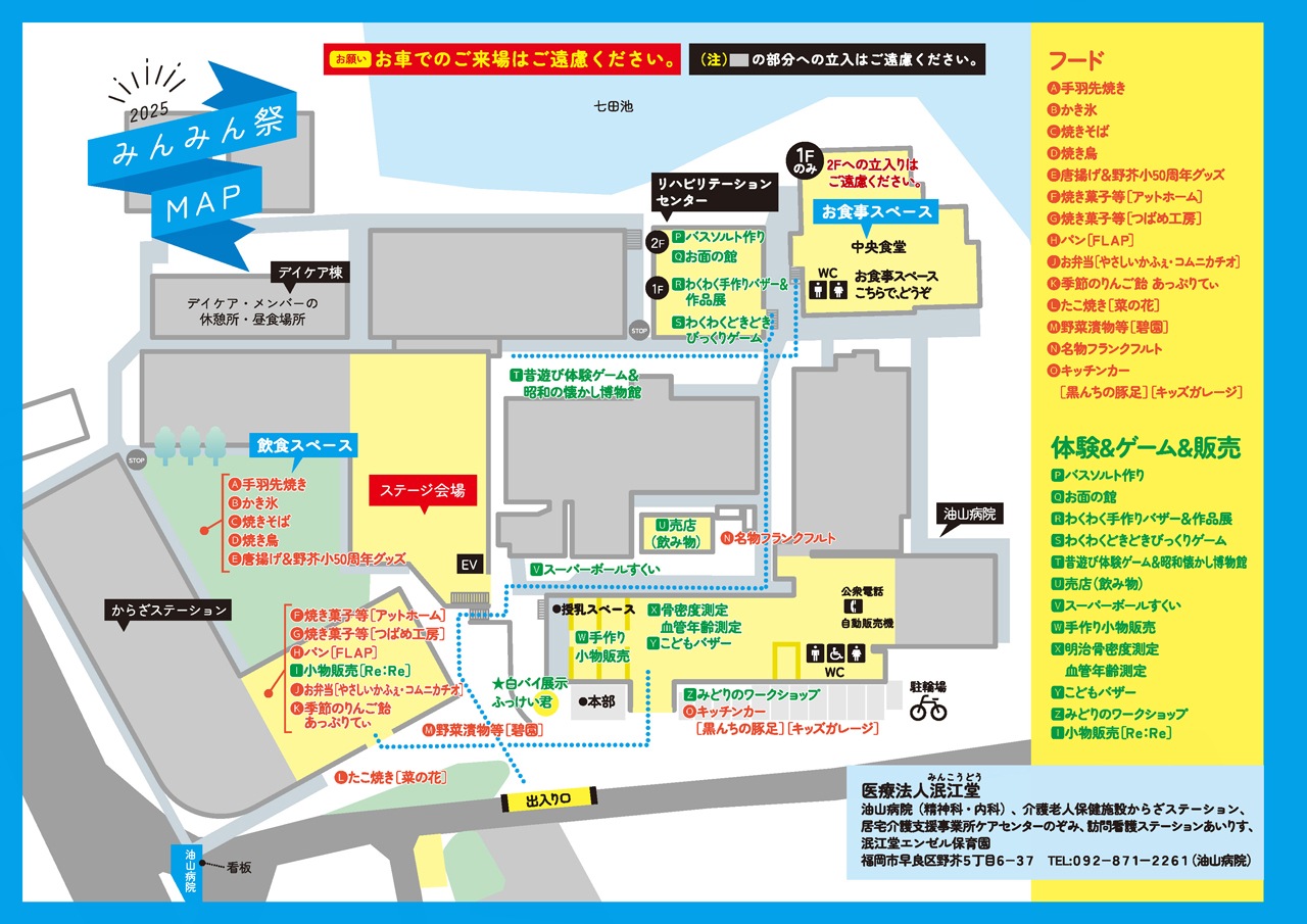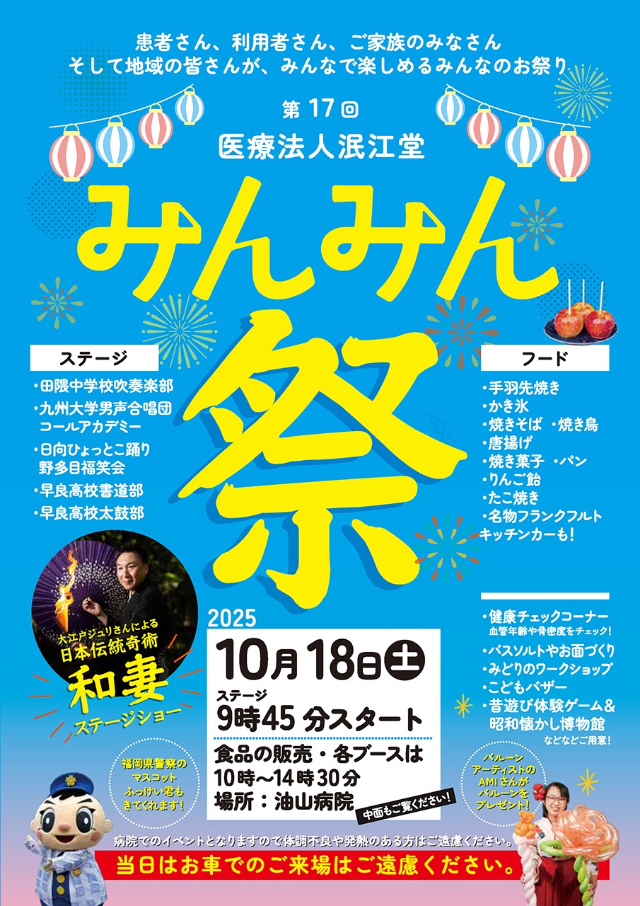 令和7年10月18日(土)、当施設の母体である、医療法人泯江堂(みんこうどう)が、敷地内を利用して秋祭りを開催いたしました。